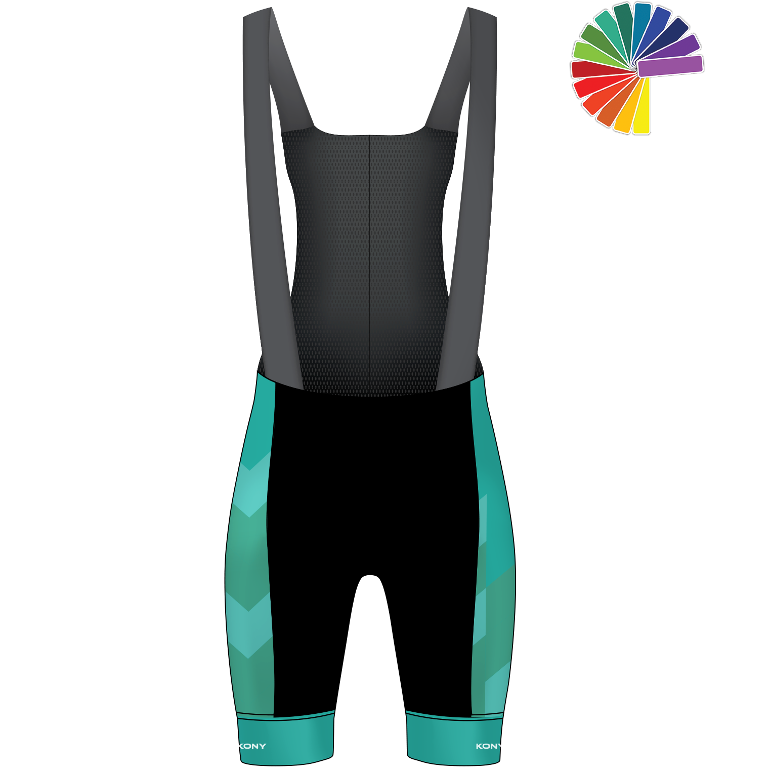 Your club’s identity is highlighted thanks to your custom bib short using the KONY online configurator. Customize your garment with logos, text, and color choices.