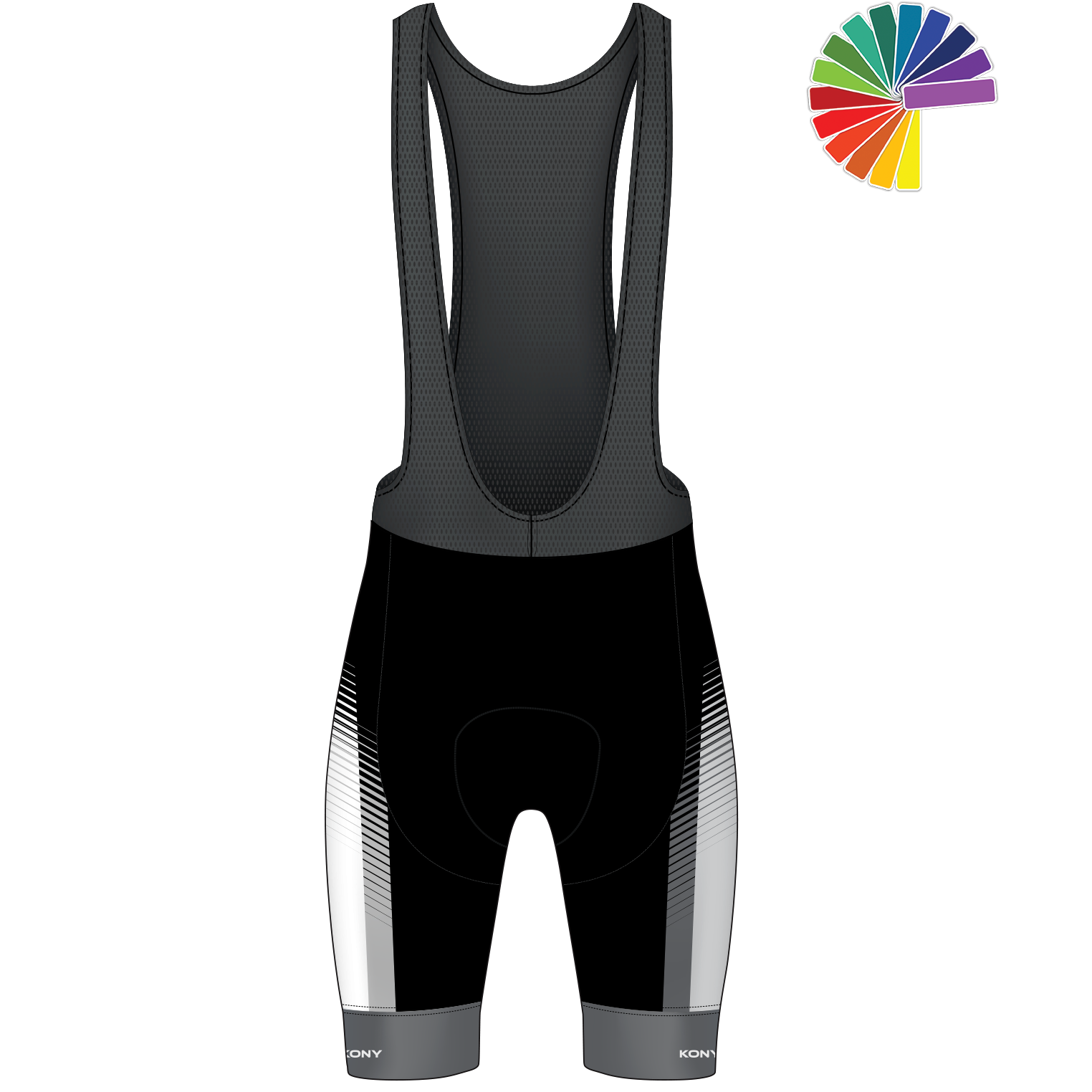 Grâce au configurateur en ligne KONY, laissez place à votre imagination et personnalisez votre tenue de cyclisme. Mettez-la aux couleurs de votre association sportive. Vous pouvez également ajouter du texte et des logos afin de mettre en avant vos sponsors